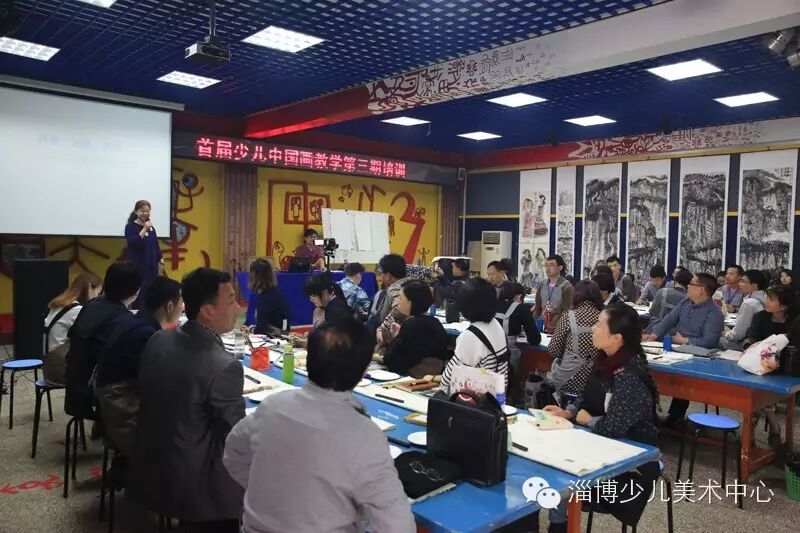 2015年10月20日,由济南艺术玩家主办,淄博少儿美术中心承办的“全国首届中国画教学第三期培训”在我校一楼展厅盛大开幕。本次会议为期两天半的时间,并增设两个夜晚的学习互动环节,吸引了来自全国各地近四十名老师前来参与培训。我校60余名任课教师也在一楼大厅聆听了精彩讲座。
